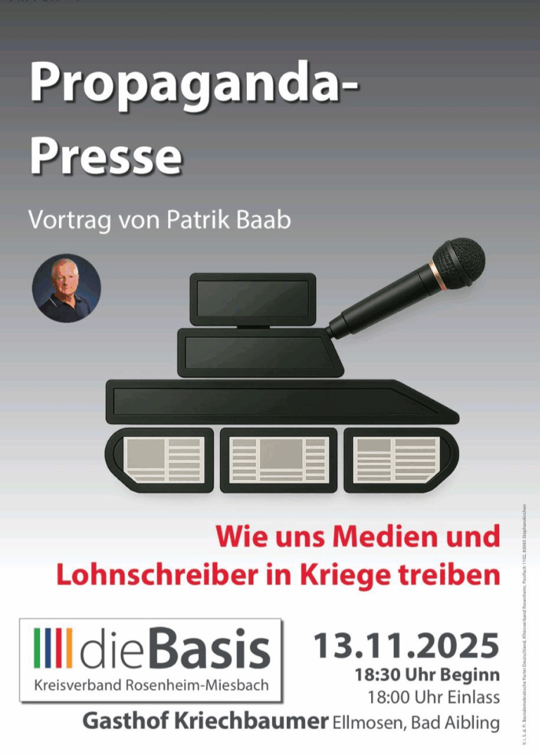 Hier kommt der nächste offene Stammtisch der Partei dieBASIS LKse Rosenheim und Miesbach Am Dienstag, den 25.11.2025 ab 19:00 treffen wir uns, diesmal wieder im Gasthof Kapsner in Hochstätt/ Schechen, Hauptstr.12 Bringt eure Themen und Anliegen mit, es gibt Gelegenheit…